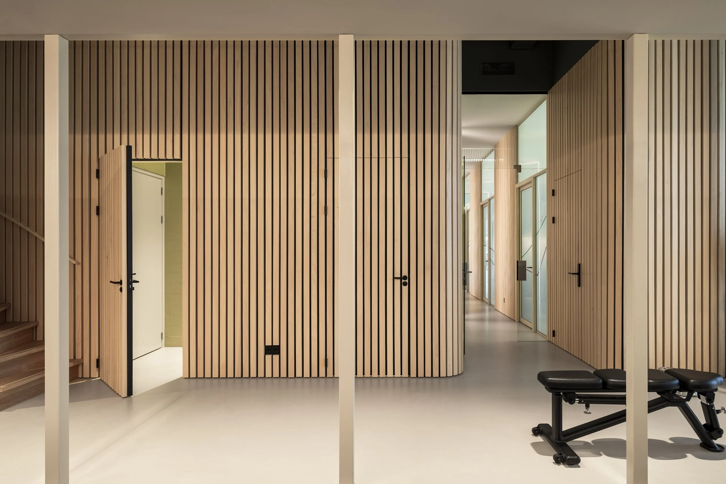 the corridor ends in the practice’s own spacious exercise space …