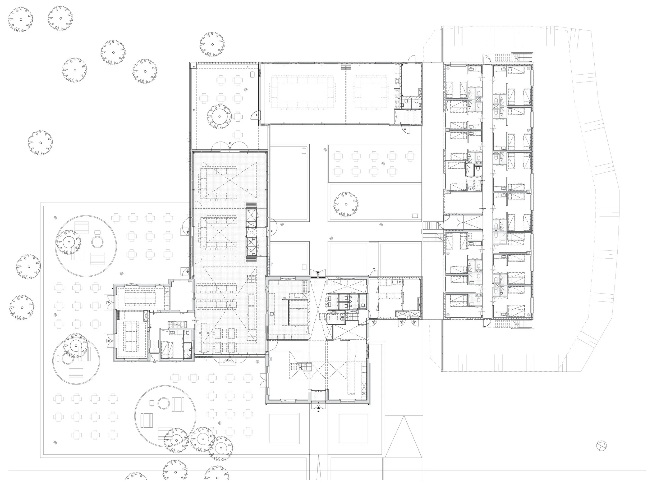 With this reorganization, spatial efficiency is enhanced: common areas are clustered and spaces designated for different target groups, making the complex easier to manage and maintain. The hostel complex is vibrant and convivial at both peak and shoulder seasons.